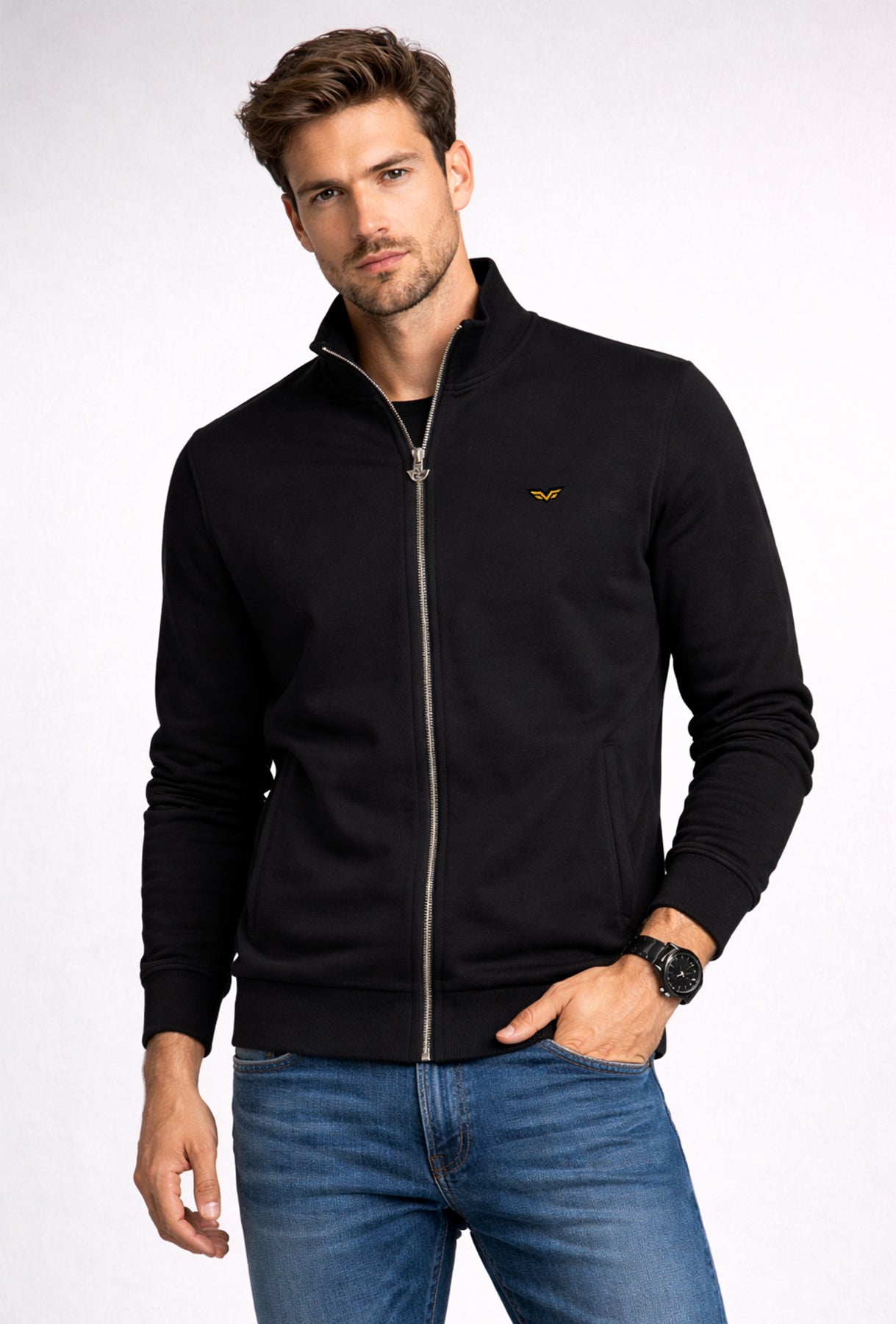 Versatile e sempre attuale, la felpa uomo ARMATA DI MARE nera con zip intera è un must per un look casual pulito e moderno. Il colore nero la rende facilissima da abbinare a jeans, jogger o chino, perfetta sia per il tempo libero che per un outfit più urbano e curato.