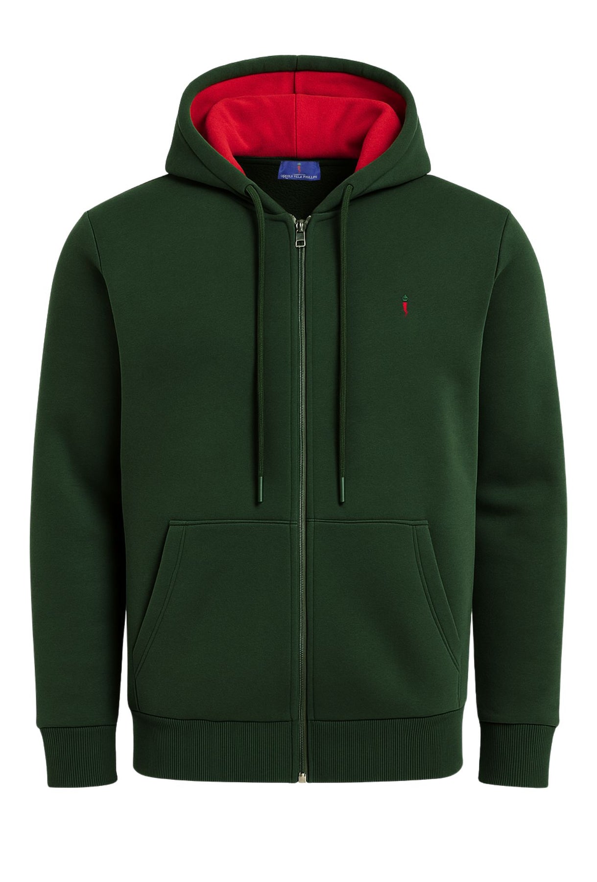 Felpa uomo felpata Full zip con cappuccio - VERDE