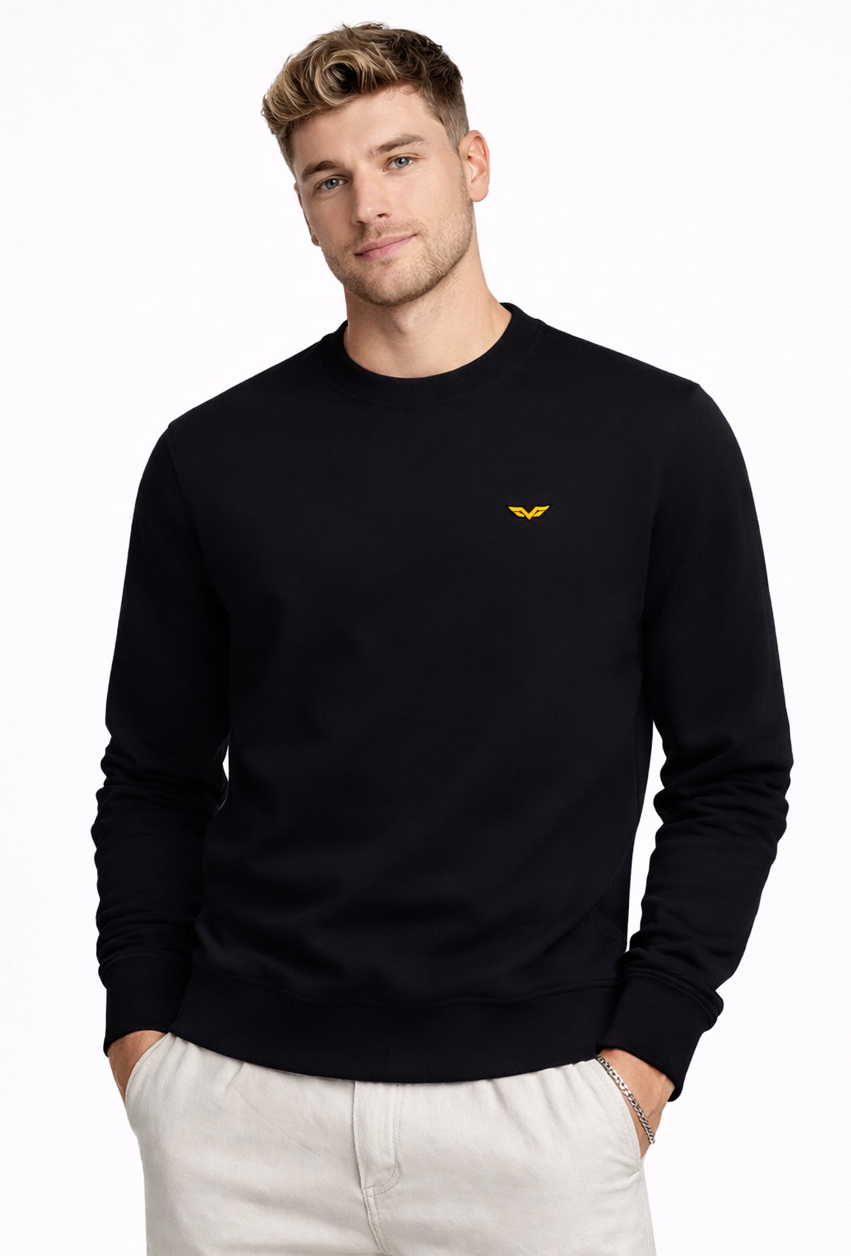 La vestibilità regular fit offre comfort e libertà di movimento, con taglie disponibili dalla S alla 3XL. Il design minimal viene valorizzato dal logo cucito lato cuore, dettaglio distintivo e di qualità. Balza e polsini completano il capo assicurando una tenuta comoda e un fit ordinato. Il colore nero la rende facilissima da abbinare con jeans, chino o pantaloni sportivi, adattandosi a ogni stile.
