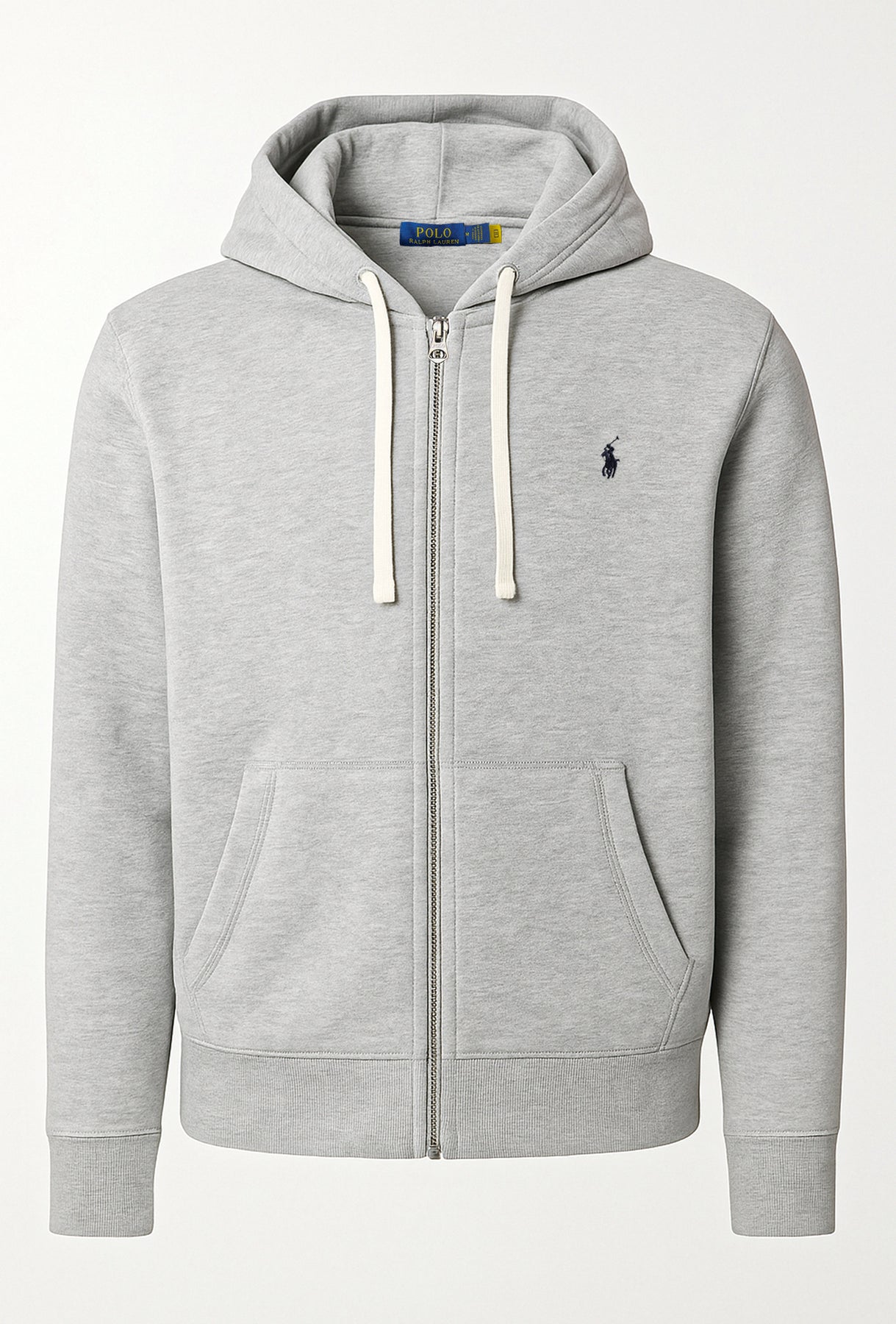 Felpa Uomo Polo Ralph Lauren con Cappuccio e Zip in Metallo – Grigio Melange
