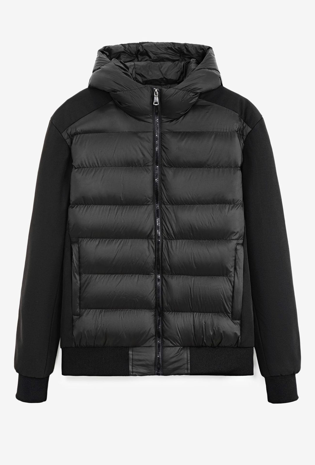 Giubbotto invernale con cappuccio smontabile maniche in tessuto - NERO