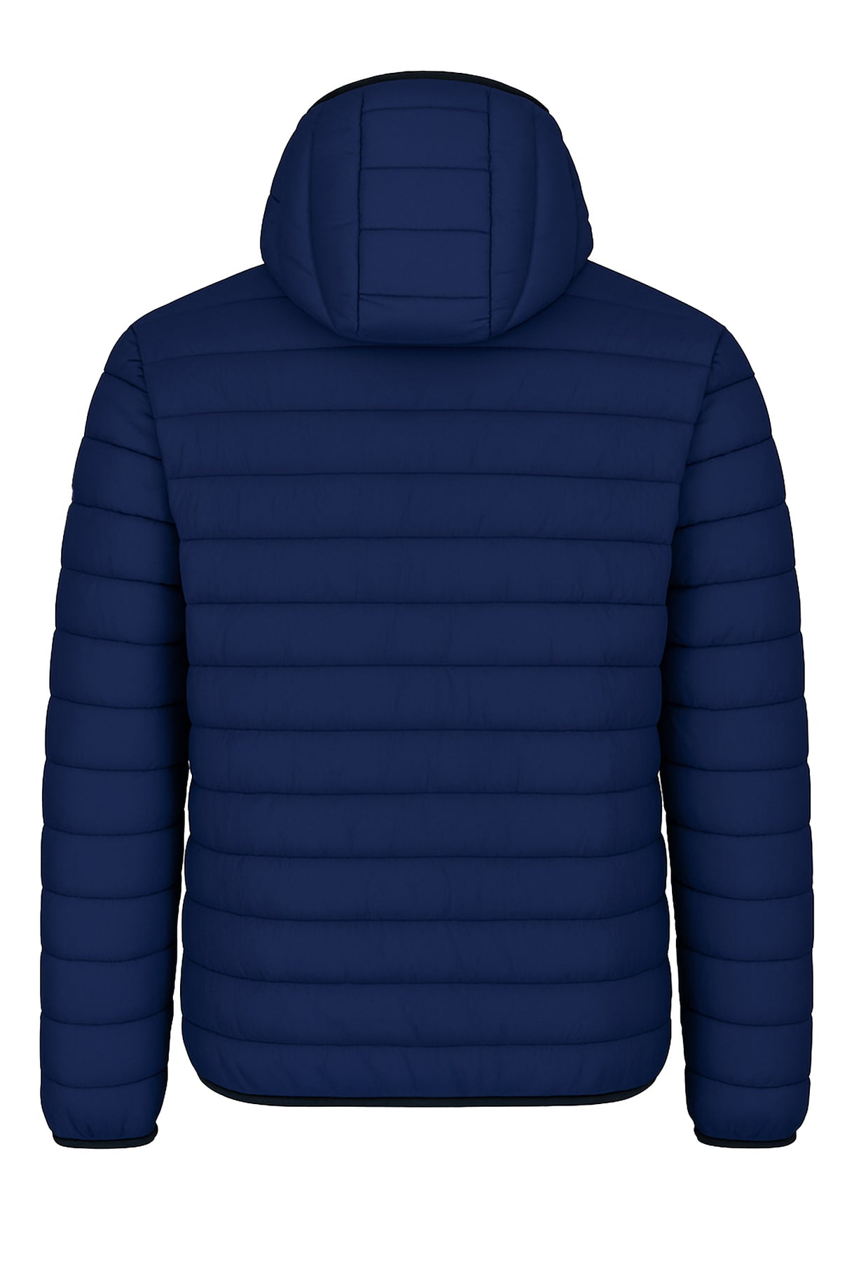 Lato piumino trapuntato blu: look casual e sportivo, perfetto per il tempo libero.