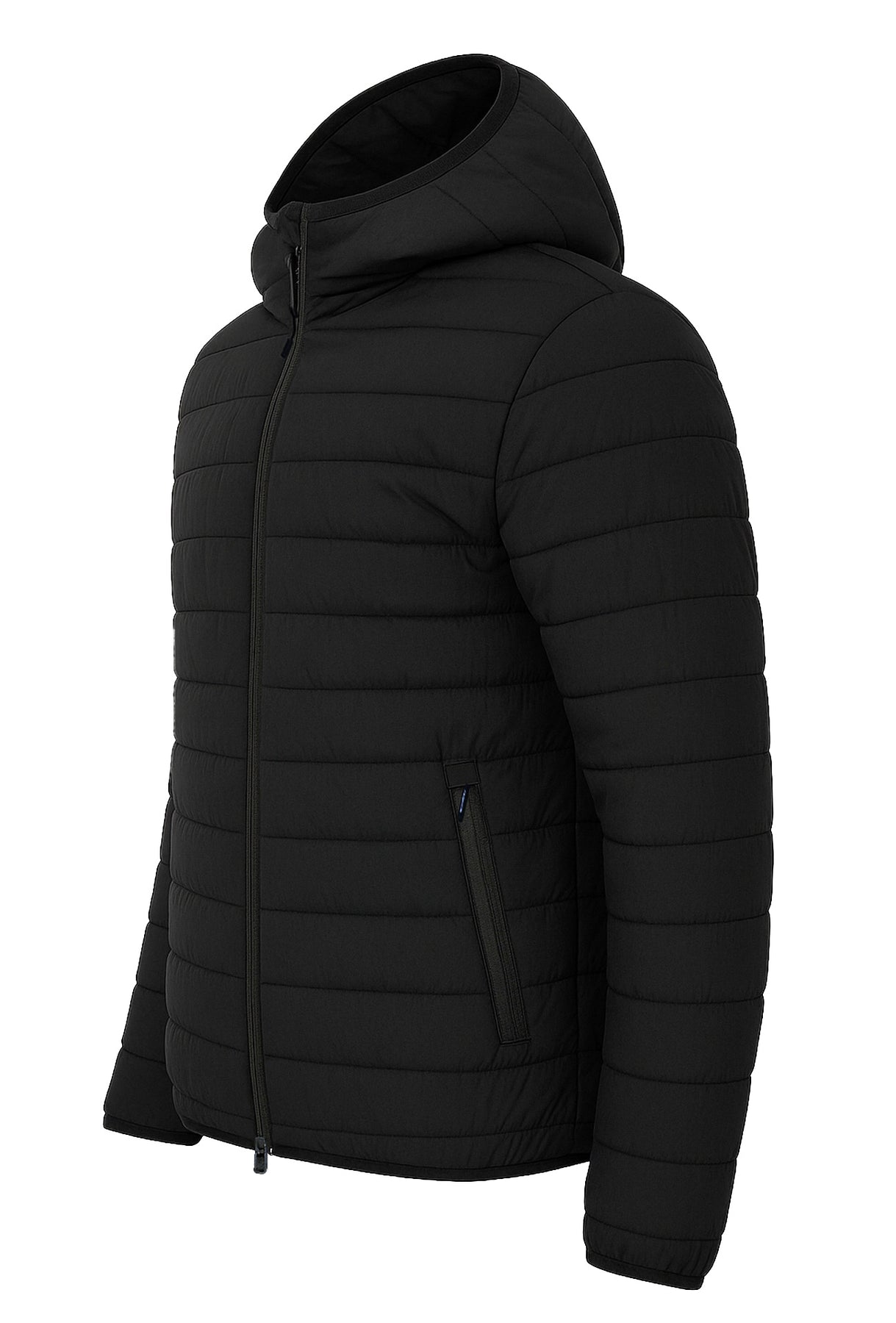 Lato piumino trapuntato nero: casual, moderno e sportivo.