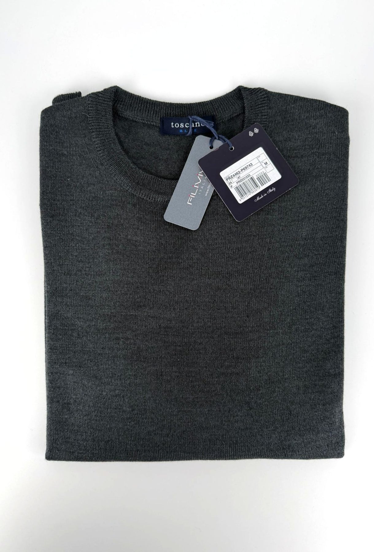 Il design pulito del girocollo classico lo rende un must-have del guardaroba maschile. La tonalità grigio scuro aggiunge un tocco di eleganza moderna, facile da abbinare con qualsiasi outfit: dai look più formali con camicia, ai casual con jeans o chino.