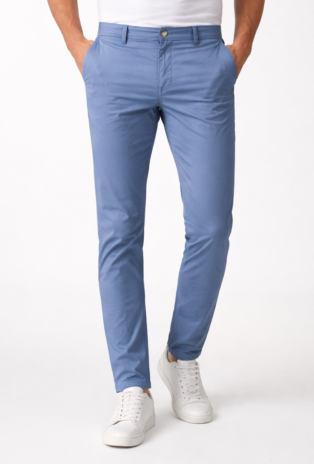 Pantalone Uomo Cotone Leggero Made in Italy Slim Fit Gamba stretta Dresserd - AZZURRO POLVERE