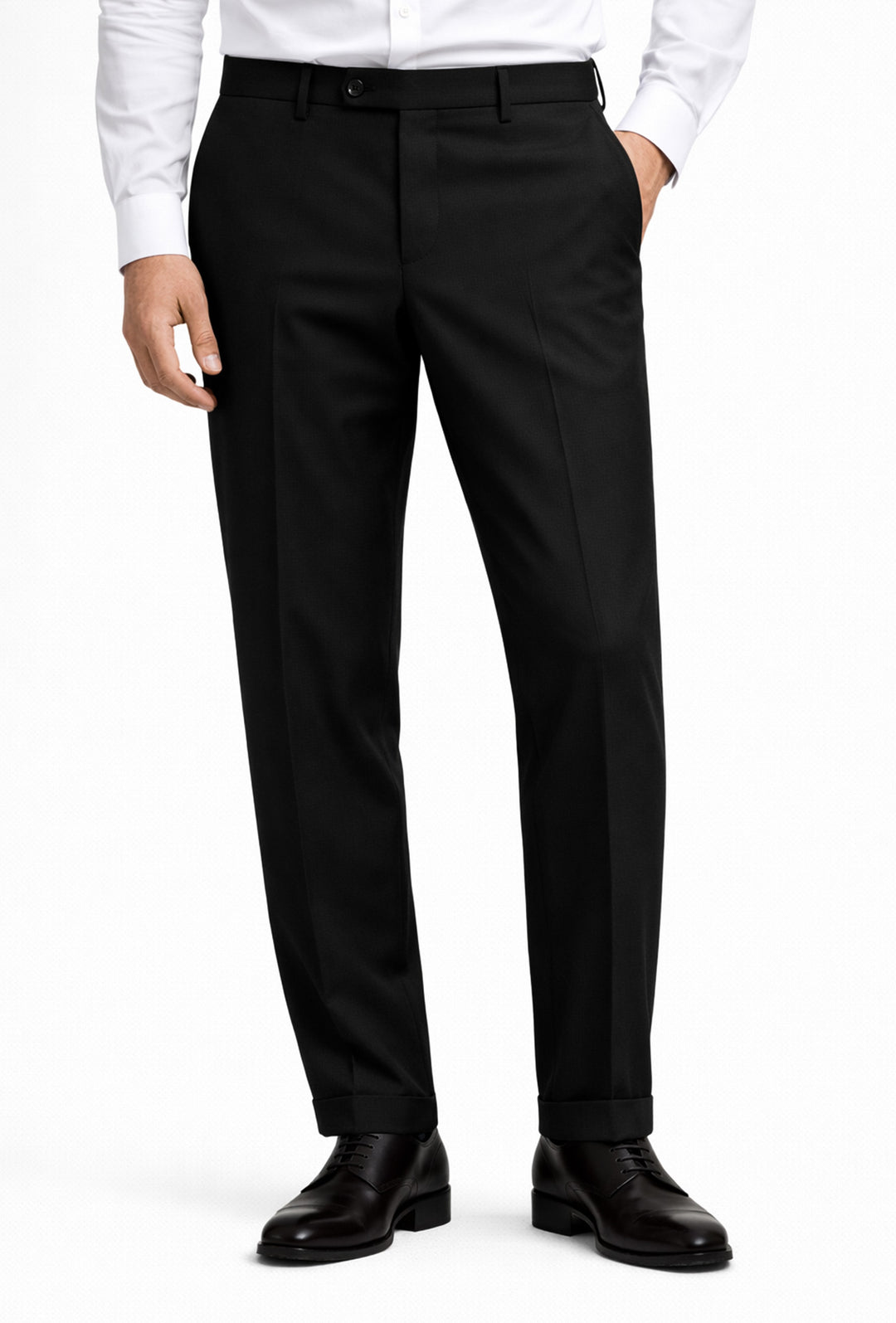 Pantaloni uomo in viscosa con tasca America, risvolto e abbottonatura allungata - NERO