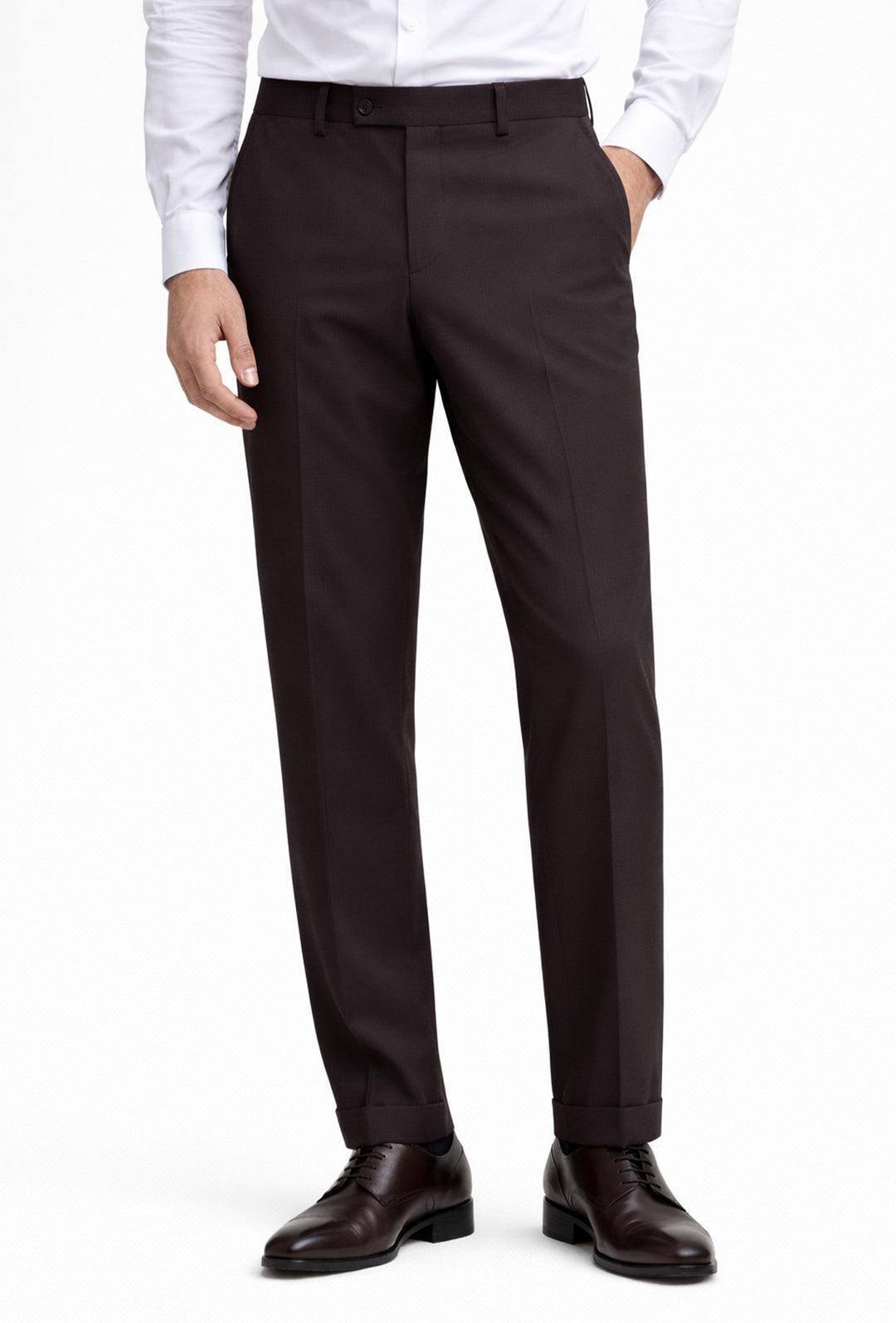 Pantaloni uomo in viscosa con tasca America, risvolto e abbottonatura allungata - TESTA DI MORO
