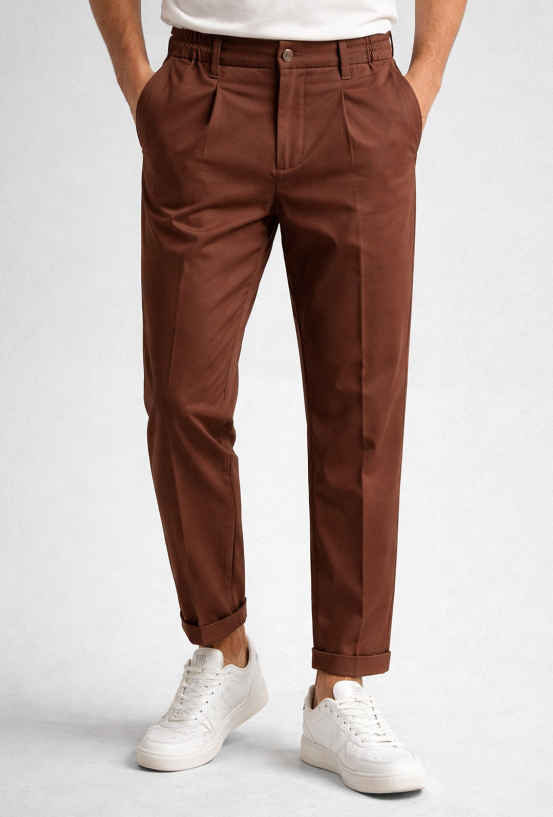 Pantalone uomo in cotone punto milano mezzo elastico in vita - MARRONE