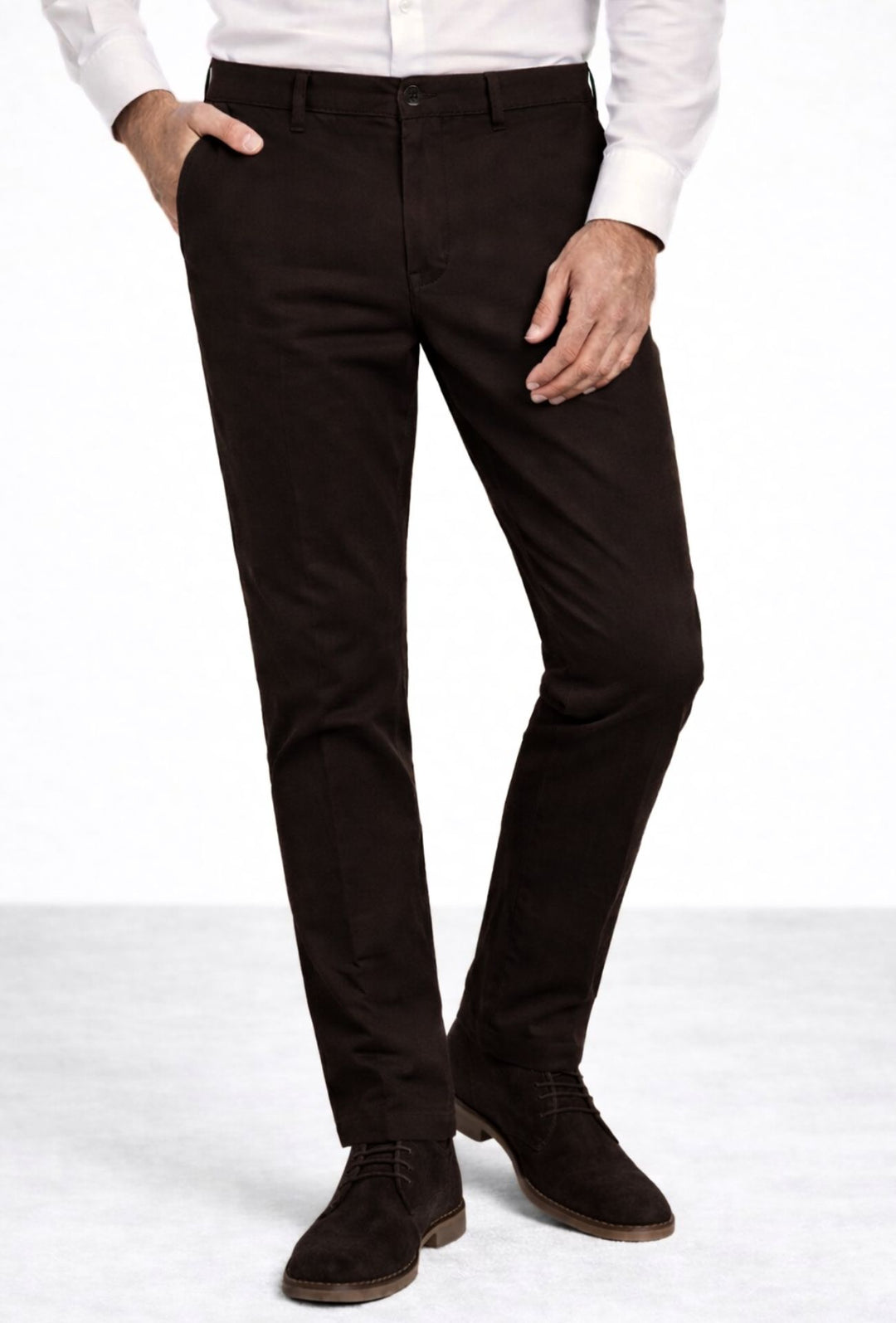Pantalone uomo in cotone punto milano mezzo elastico in vita - MARRONE
