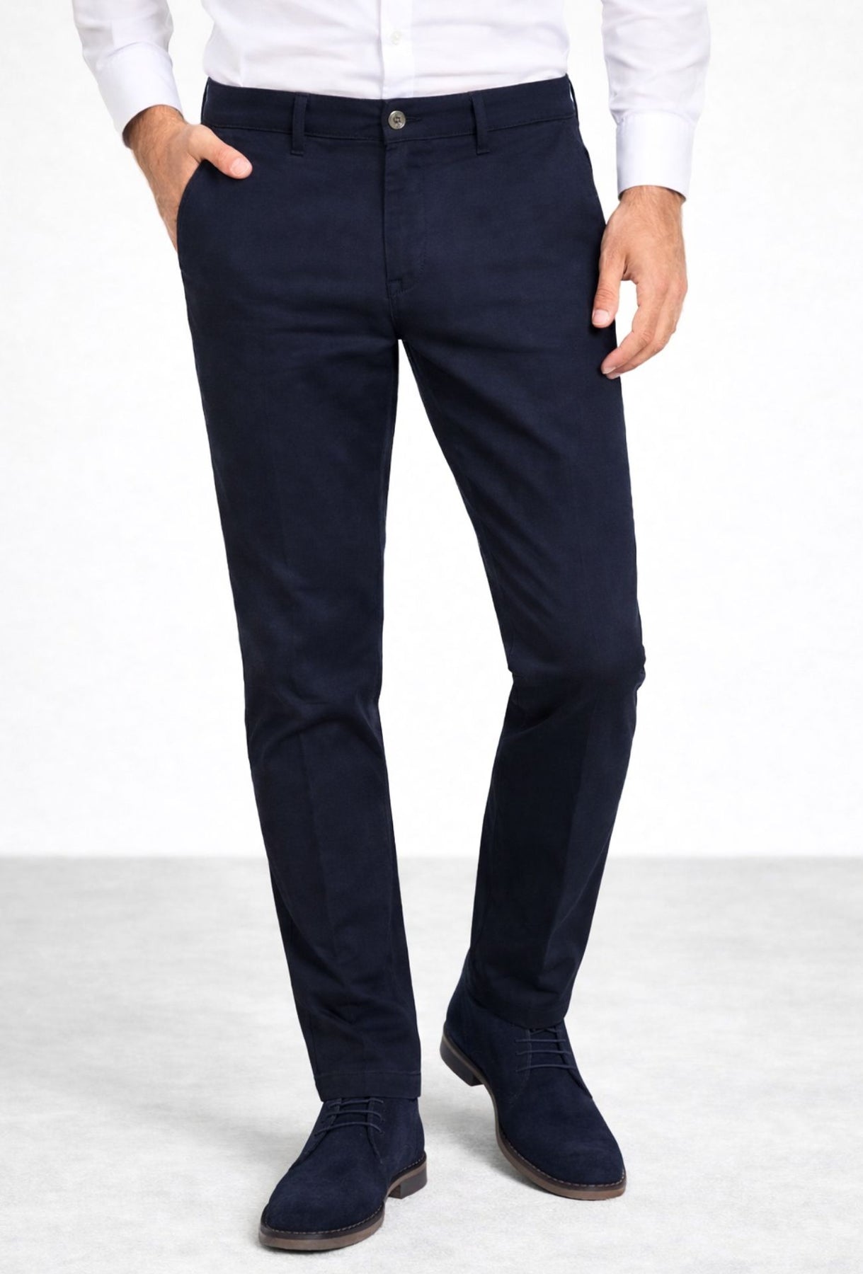 Il tessuto composto da 97% cotone e 3% elastan assicura una sensazione morbida sulla pelle, ottima traspirabilità e la giusta elasticità per accompagnare i movimenti quotidiani senza costrizioni. La gamba stretta valorizza la silhouette maschile, rendendo questo pantalone ideale sia per look casual curati che per outfit più eleganti e da ufficio.