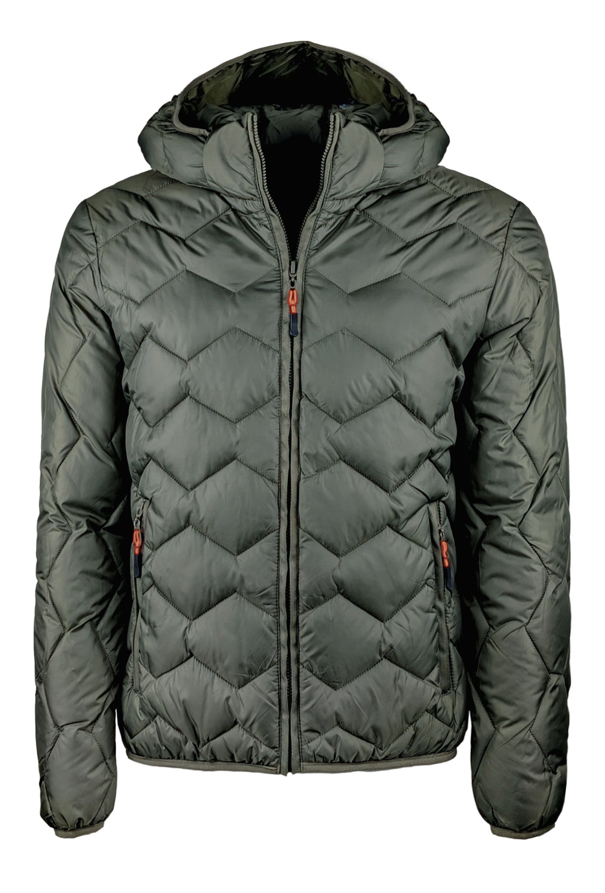 Il design con trapuntatura a rombi dona un tocco dinamico e contemporaneo, mentre il cappuccio smontabile con zip assicura versatilità e protezione in ogni condizione meteo. All’interno, una tasca lato cuore consente di riporre oggetti personali in sicurezza, mentre le tasche frontali con zip aggiungono praticità e stile.