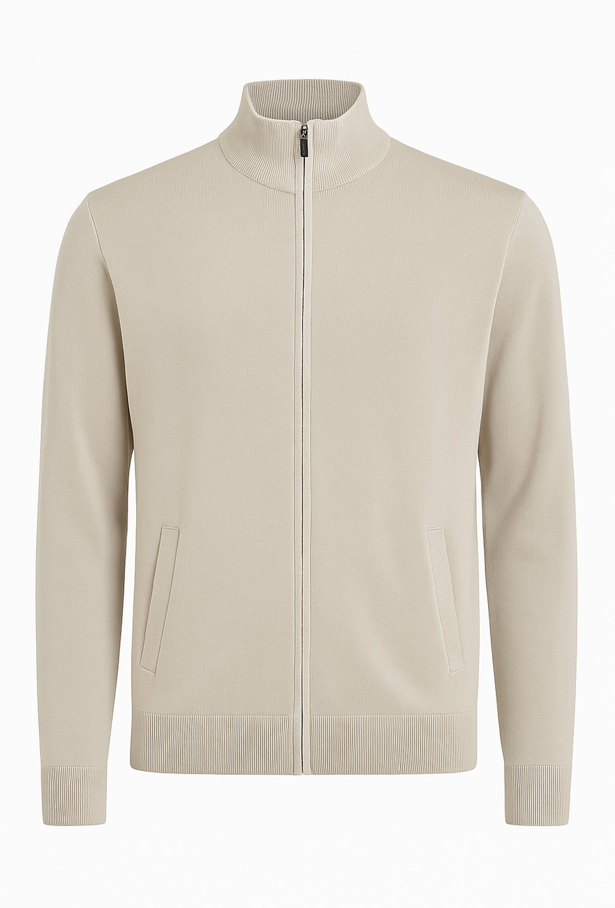 Maglioncino Uomo Full Zip con Tasche – Dresserd in Viscosa Pesante Beige Chiaro